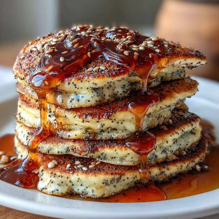 Pin it Elevate your morning routine with these fluffy, aromatic pancakes. Infused with nutty black sesame seeds and finished with a drizzle of sweet syrup, this dish offers a unique and sophisticated twist on a classic breakfast favorite. With a preparation time of just 15 minutes, you can easily transform your kitchen into an Asian-inspired bistro.