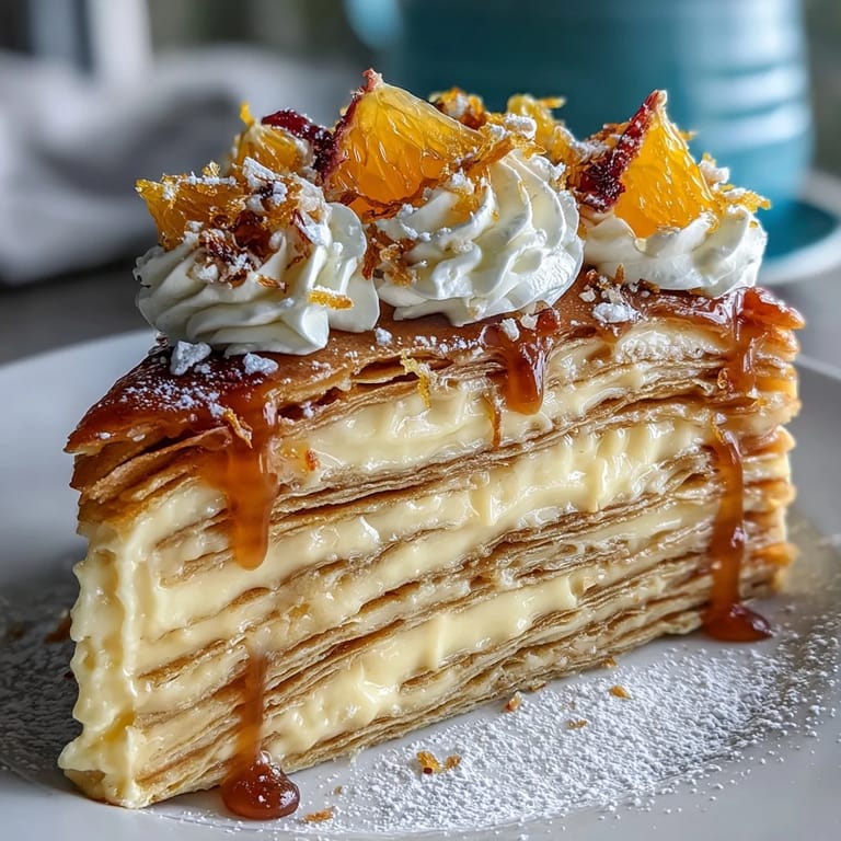 Pin it I bought blood oranges on a whim one winter morning because they looked too beautiful to pass up, then panicked when I realized I had no plan for them. A friend suggested layering crêpes with anything citrusy, and suddenly I was standing in my kitchen with store-bought crêpes, a jar of blood orange curd, and a wild idea. The first slice revealed these dramatic crimson streaks between pale layers, and I felt like I'd accidentally made something fancy. It's become my go-to when I want to look like I tried harder than I did.