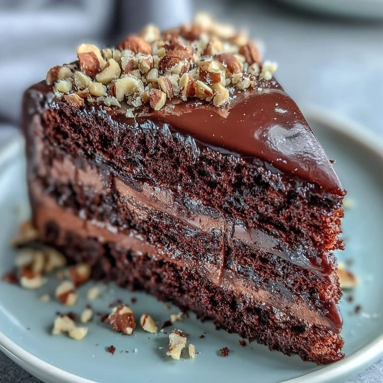 I made this for my sister's birthday after she mentioned missing the chocolate cake from a bakery that had closed years ago. She took one bite, closed her eyes, and said it was even better than she remembered. The ganache was still slightly warm, pooling around the praline shards, and I realized I'd accidentally created a new memory instead of just chasing an old one. Now it's the cake everyone asks for when something matters.