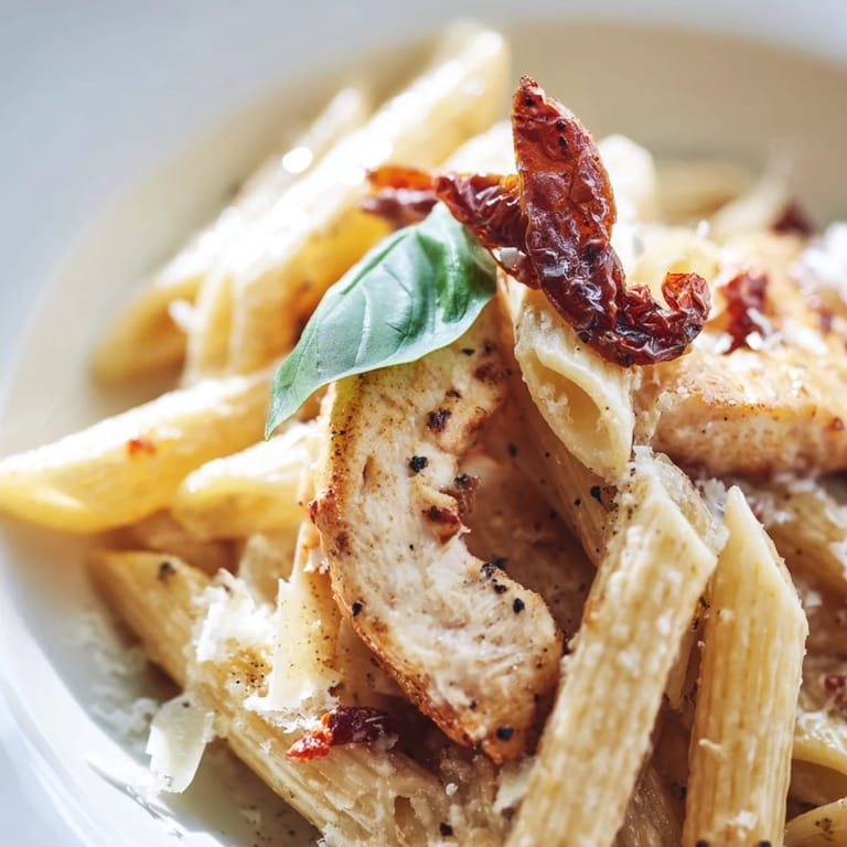 Pin it The first time I made this pasta was on a rainy Tuesday when I needed something comforting but didn't want to spend hours at the stove. That aroma of garlic and sun-dried tomatoes hitting the warm cream instantly became a favorite in our house. Now it is the go-to meal when friends pop over unexpectedly because it looks impressive but comes together in under 40 minutes.