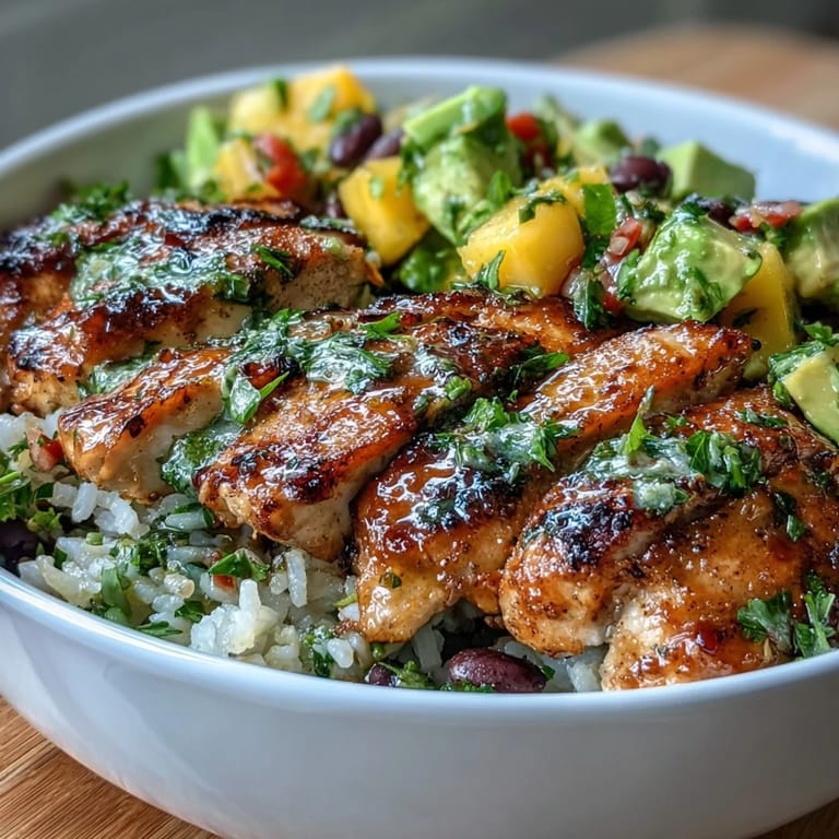 Pin it There's something about assembling a bowl that feels less like cooking and more like creating something alive on a plate. I discovered this combination during a sweltering July afternoon when my farmers market haul included the most fragrant mango I'd ever encountered, sitting next to perfectly creamy avocados begging to be used. The idea of pairing them with grilled chicken seemed obvious, but it wasn't until I added the lime juice and cilantro that the whole thing clicked into place—suddenly I was tasting something that felt both comforting and exciting at once.