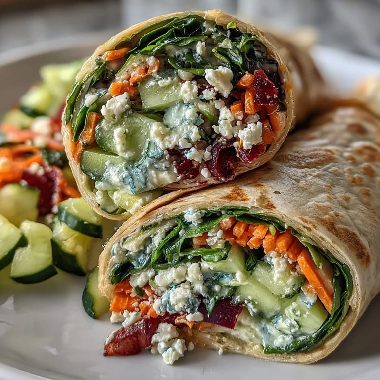 - Wraps: 4 large flour tortillas (10-inch), 1 cup baby spinach leaves, 1 cup shredded carrots, 1 cup thinly sliced cucumber, 1 red bell pepper (thinly sliced), 1/2 cup thinly sliced red cabbage, 1 ripe avocado (sliced), 1/4 cup crumbled feta cheese (optional), 1/4 cup fresh basil or cilantro leaves