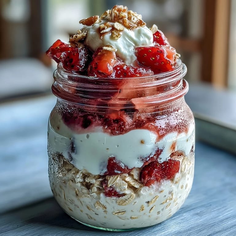 Pin it There's something magical about opening your fridge on a rushed Tuesday morning and finding breakfast already waiting for you, layered beautifully in a mason jar like a dessert you're allowed to eat for health reasons. I stumbled onto overnight oats by accident when I was meal prepping for a chaotic week, but it was the strawberry cheesecake version that made me actually look forward to 6 AM. My friend texted me a photo of her mason jar moment, and I realized I'd been making boring versions all along, missing the creamy cheesecake layer that changes everything. Now I make a batch every Sunday evening, and somehow the flavors get even better as they sit in the cold darkness of my fridge.