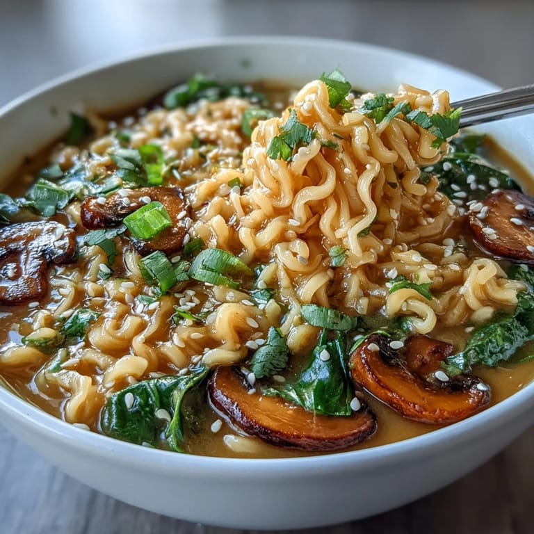 Pin it One rainy Tuesday, I stood in my kitchen with half a can of coconut milk, a jar of red curry paste, and absolutely no plan. My roommate had gone vegan, my pantry was sparse, and I had maybe thirty minutes before we both needed to eat something. I grabbed what I could find—mushrooms from the crisper drawer, some bok choy that was still holding on—and started building flavor layers in a pot. That bowl of ramen that emerged was so unexpectedly vibrant and creamy that she asked for the recipe before she'd even finished eating.