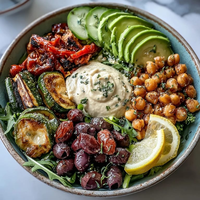 Pin it There's something about assembling a Buddha bowl that feels less like cooking and more like creating—standing at your counter with an array of colorful ingredients, each one finding its perfect spot. I stumbled onto this Mediterranean version during a particularly uninspired Tuesday when my fridge felt full but my meal ideas felt empty, and somehow layering roasted vegetables with creamy avocado and tangy tahini turned the whole day around. It's become my go-to when I want something that tastes like I spent hours in the kitchen but actually took about fifty minutes, start to finish.